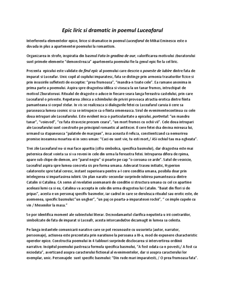 Epic Liric Si Dramatic In Poemul Luceafarul