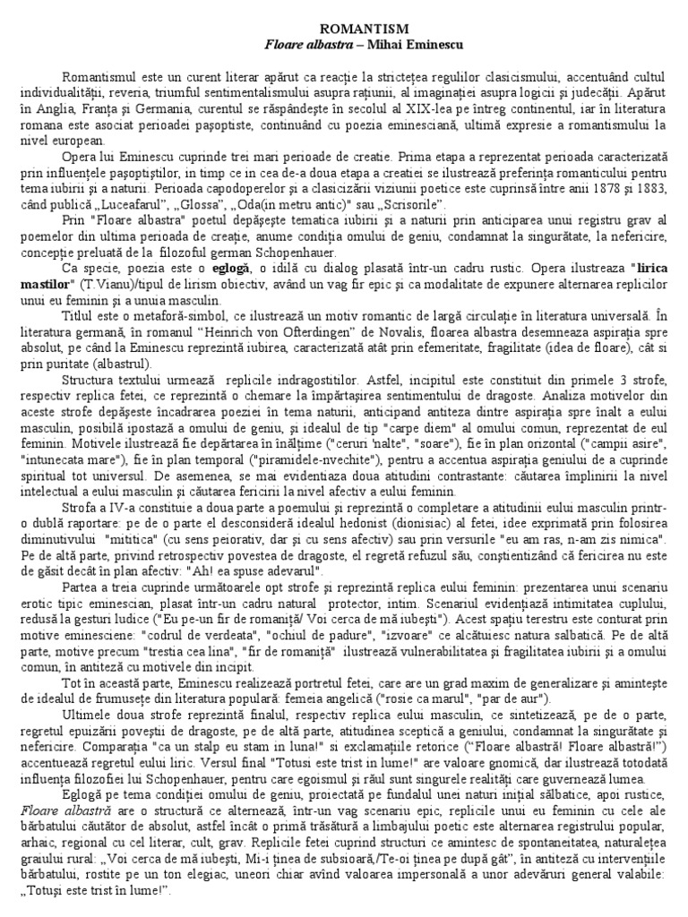 Floarea Albastra De Mihai Eminescu Eseu