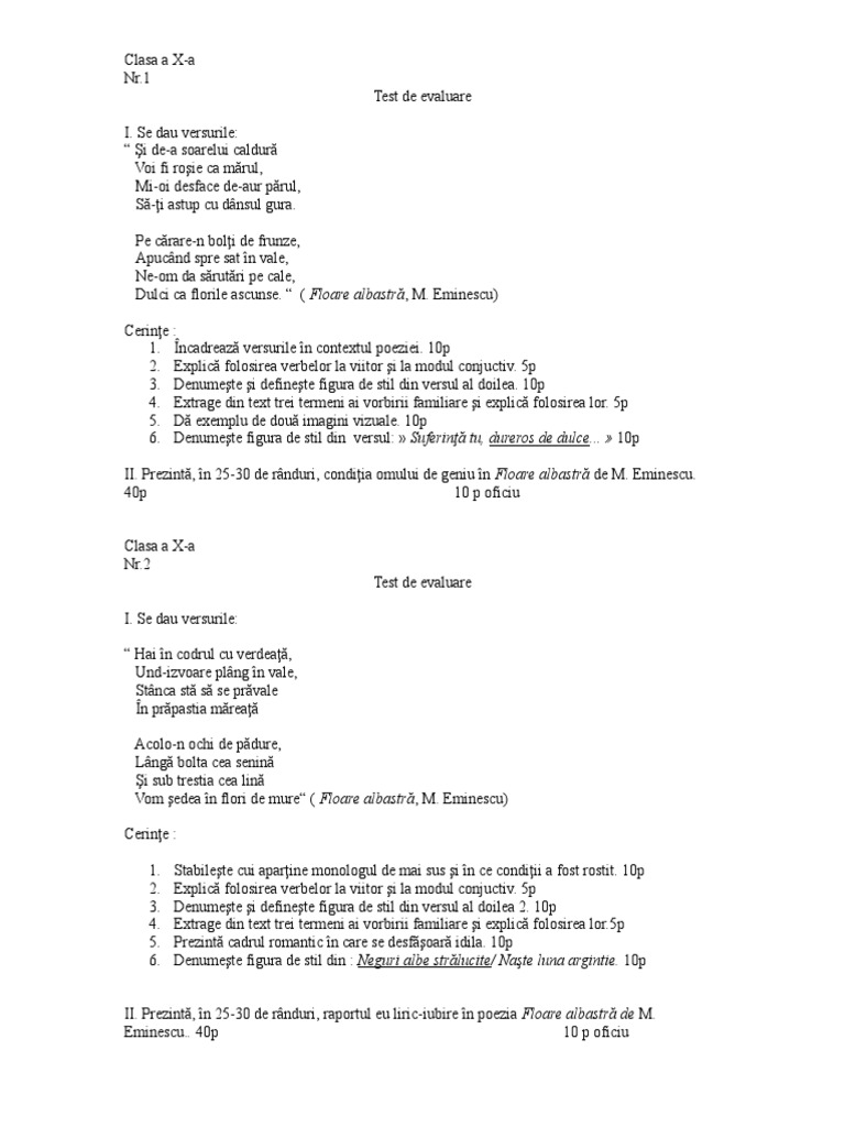 Doc Poezia Romantică Floare Albastră De Mihai Eminescu Andreea Valentina Alexandru Academia Edu