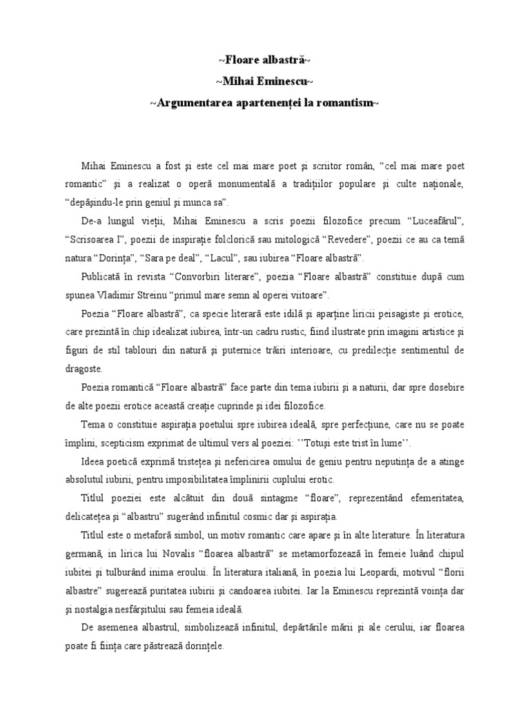 Referat Floare Albastra De Mihai Eminescu 327427 Graduo