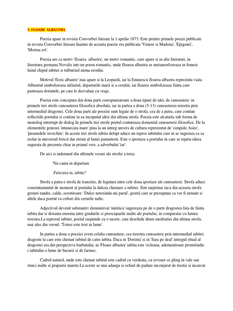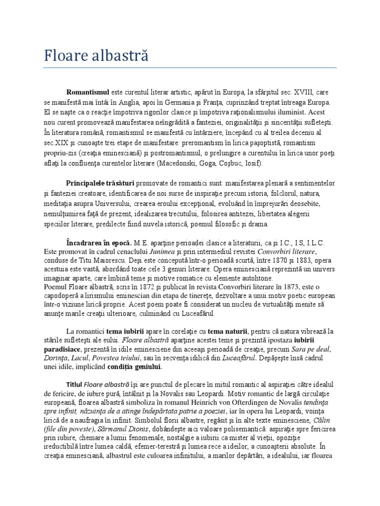 Doc Poezia Romantică Floare Albastră De Mihai Eminescu Andreea Valentina Alexandru Academia Edu