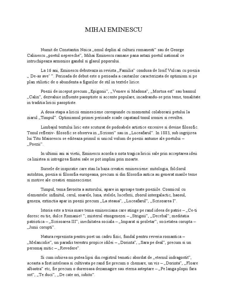 Eseu Floare Albastra De Mihai Eminescu