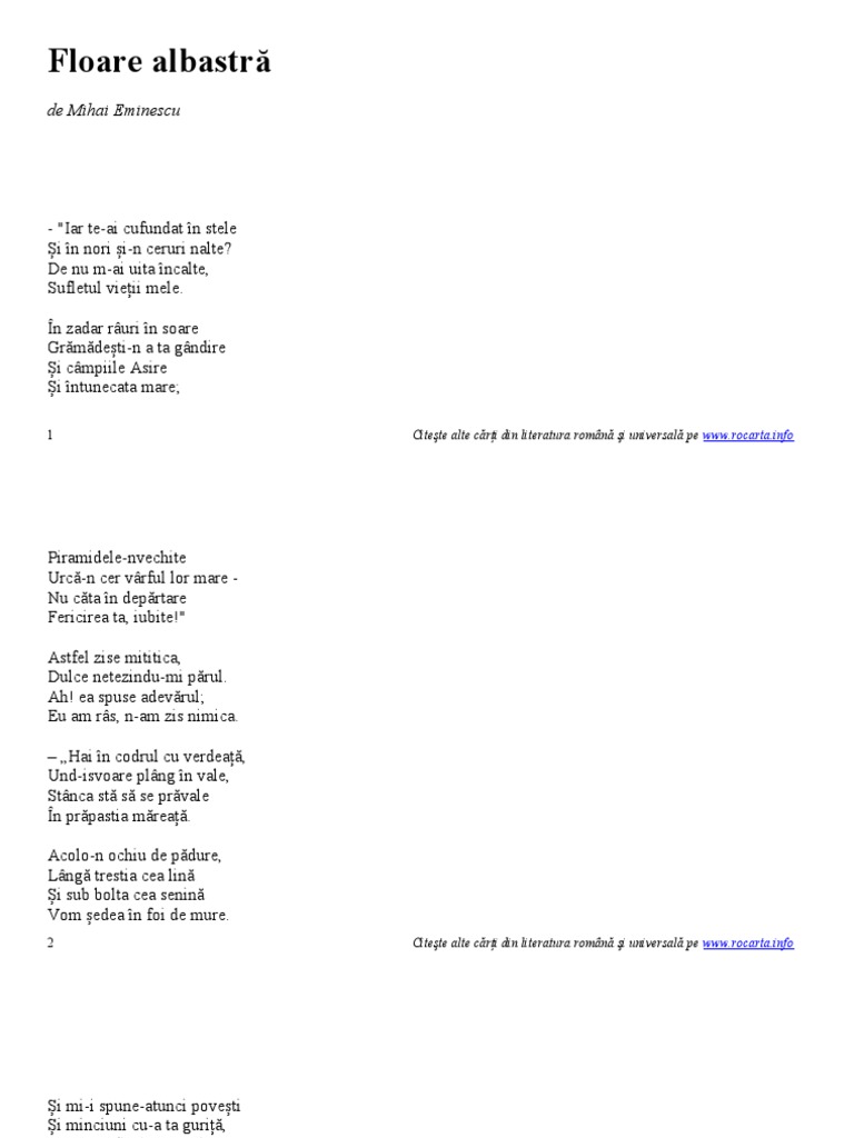 Poezii De Mihai Eminescu 1 Floare Albastră Wattpad