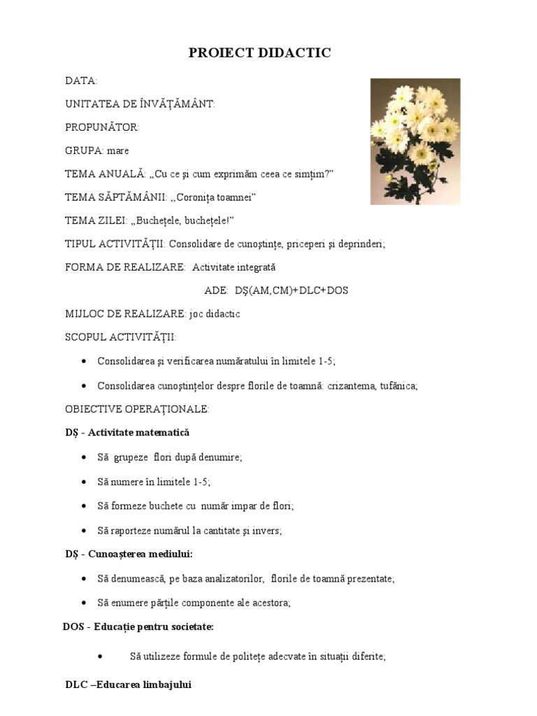 Doc Proiect De Activitate Integrata Buchetul Primaverii Flory Toader Academia Edu