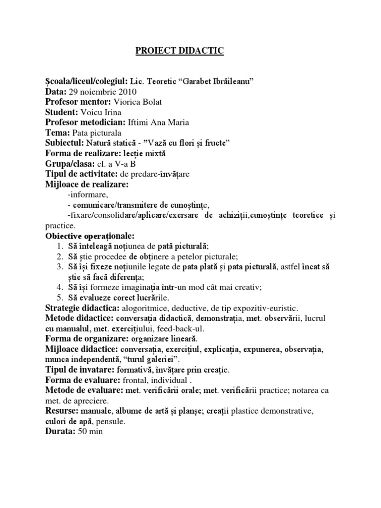 Proiect Didactic La St Nat Bojescu By Vitaliy Issuu
